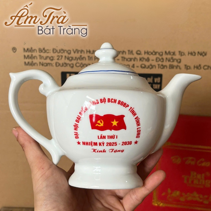 - Tối ưu nhận diện thương hiệu: Bề mặt trơn và màu men trắng sáng của bộ trà là điều kiện lý tưởng để mọi chi tiết logo, thông điệp của doanh nghiệp được hiển thị rõ ràng và nổi bật, tạo dấu ấn sâu sắc trong tâm trí người nhận.